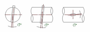 其他类型的传感器是将其检测杆插入工艺管道中,安装时除了总压孔应正对流速方向外,保证传感器检测杆与工艺管道的轴线垂直,其允许的位置角压偏差如图五所示。