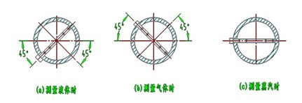对于垂直管道传感器可安装在管道水平面沿管道圆周360的任何位置上,高低压引压管应处于同一平面上,由图六(a)所示;当测量液体时,应向下侧倾斜安装如图六(b)所示;当测量气体的蒸气时应向上倾斜安装如图六(c)所